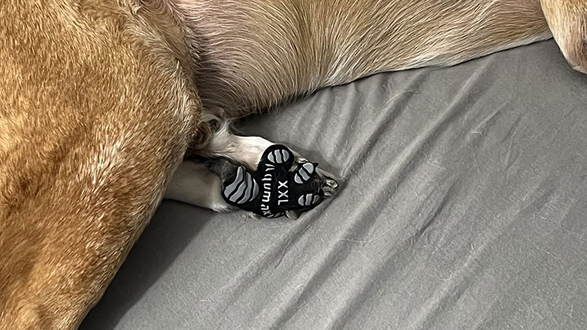 I guess to be fair, Paw Grips were designed for older and special needs dogs, plus dogs living in homes with waxed-to-the-max hardwood floors. The stick-on anti-slip pads use heavy rubber dots over a "soft and breathable" base to provide extra traction for their canine wearers. Once applied, each set of PadGrips should last from 2 to 7 days, depending on your dog's activity level.